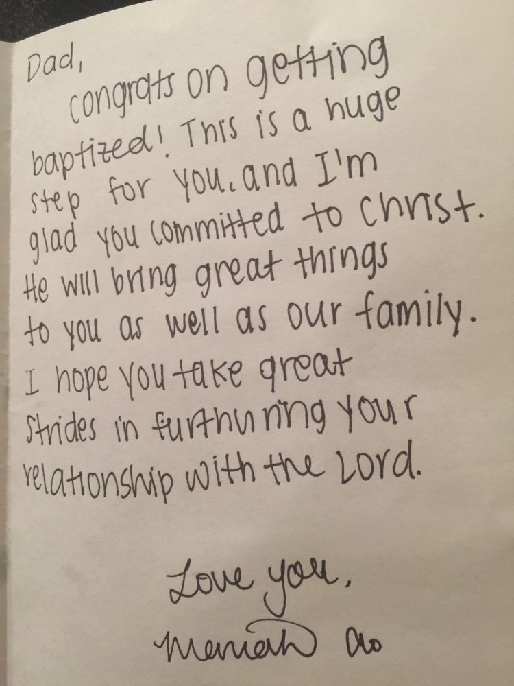 爸爸受洗了,大女儿爸爸画了张画,还写了点东西.Shortandsweet,butitmeansalottome,toherDadandher.GlorytotheLord!!