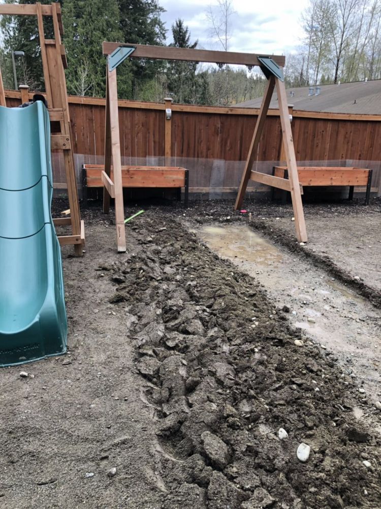 后院距离绿化带太近,花生屯雨季漫长,根本无法维护一个好的草坪,于是抠掉,升级为红方格游乐场,还我娃一个幸福童年。