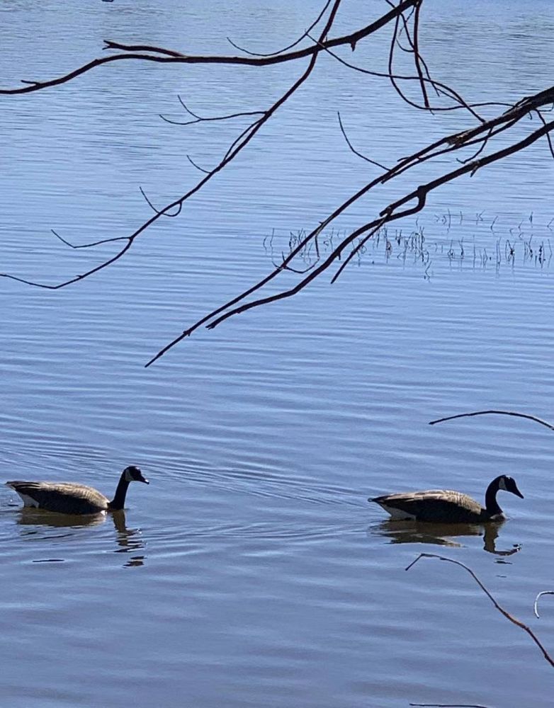 我走在河边,清幽宁寂,泥土的芳香围绕着。河面平远空阔,岸边的屋宇掩映可见。河中虽无舟楫,但湛蓝的天空中,一阵阵地传来鸟叫声,扫除了荒寒之感。这是最后的一些残雪了,海狸已没了耐心。忽然,在我身边,河面上落下两只加拿大大鹅,你前我后地向我致意。友人从北京送来一组玉兰的照片,显然那里已春意盎然,使我情不自禁地诗意悠悠而生。来一首五绝题照[