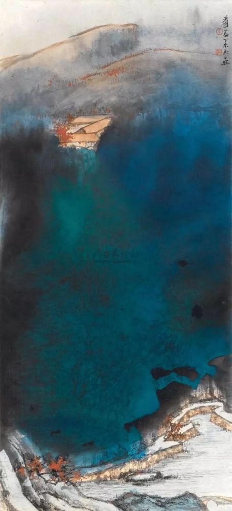 几年前,看过一副很有意思的画,乍一看是抽象画,仔细看,好像画的是一座山峰。浓淡变幻的土黄色块让人想到宏伟的山涯,几抹大片的深绿尽现山间的林木葱嵘,最妙的山顶上的天空,几缕翻卷跳脱的淡蓝发于山顶,着色不多,天之晴明,云之奇变却跃然纸上。看得出它出自一位对色彩和构图都极老练的高手。抽象画几乎都是油画,它却不是,好像水[