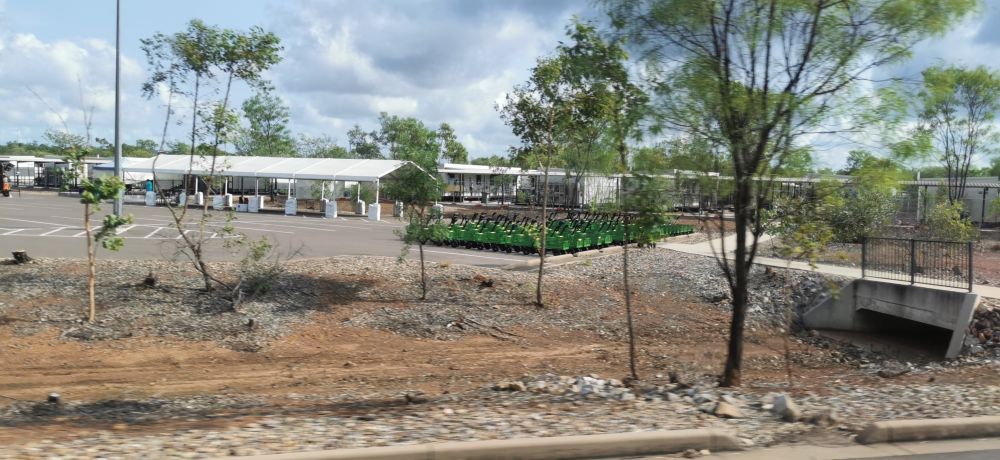 10月18日,26名机组人员从悉尼出发到达澳洲北领地首府达尔文市。我们将在这里隔离并执飞不同的疫情撤离特殊飞行任务(repatriationflights):广袤的北领地沙漠中,澳洲政府建起了一座“防疫城”或者叫“隔离中心”吧(见下图)这座“隔离中心”,远离城市,位置绝好的,所谓得天独厚。一间间联排中的独立小屋,麻雀虽小五脏俱全,虽不如星级酒店的舒适[