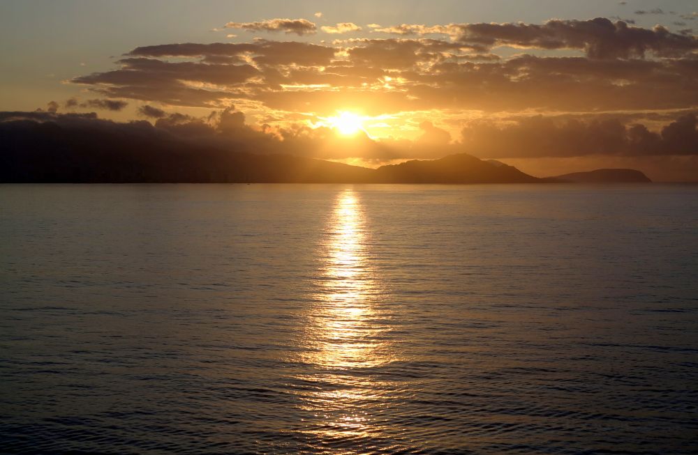 迎来了船上的最后一个日出,大船开始慢慢驶进欧胡港湾。啊,终点到了。一场梦幻般的邮轮盛宴结束了。人们面带着满足笑容相互打着招呼,送上临别的美好祝福,各自踏上了自己的旅程。