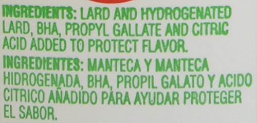 成分表:LardandHydrogenatedLard,BHA,PropylGallateandCitricAcidaddedtoProtectFlavor.