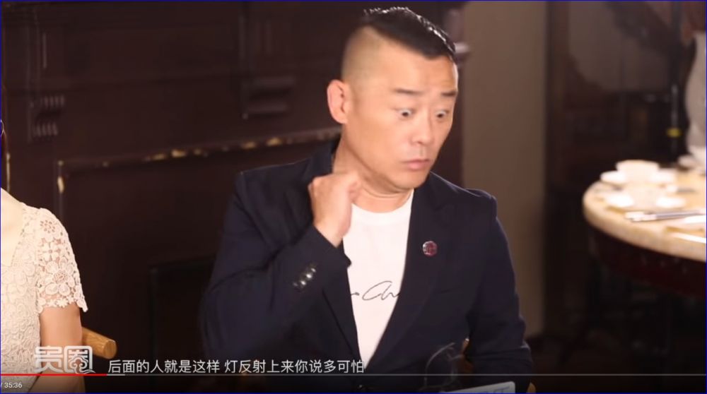 周立波在接受媒体专访时模仿“凶神恶煞”的美国警察。视频截图