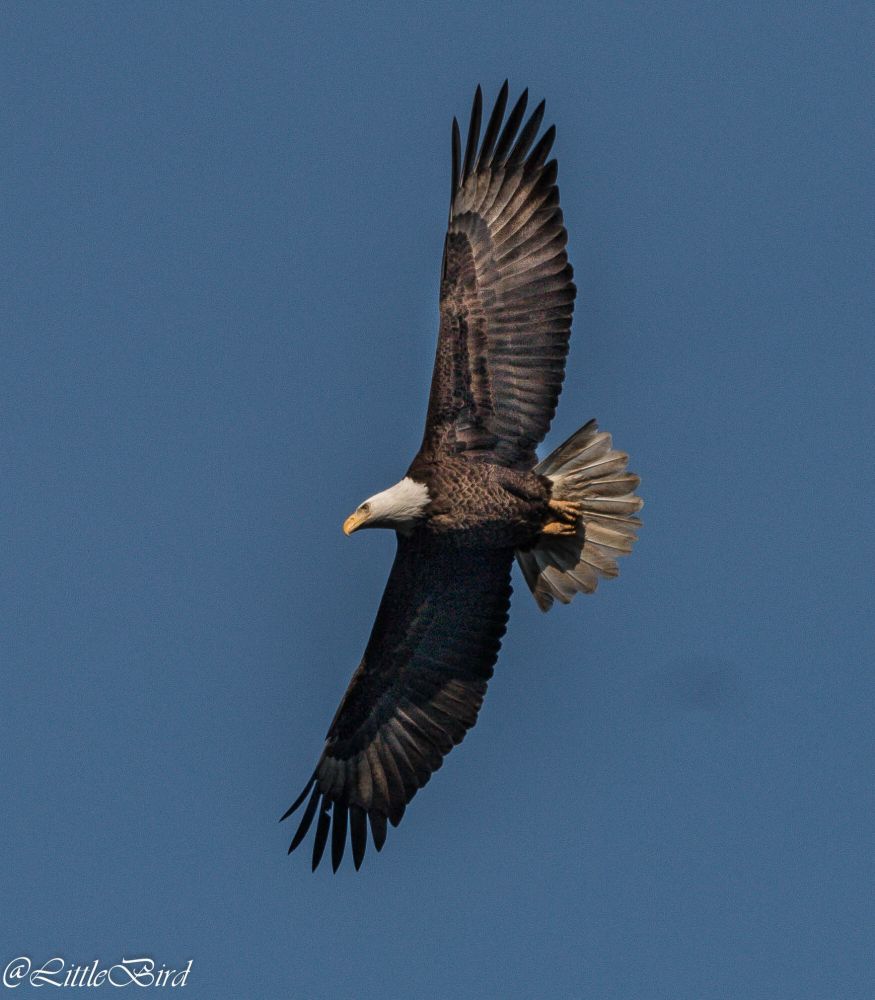 【七律–白头鹰】朔风瑟瑟水涟涟,雾散云开丽日天。鸥鹭盘旋飞浪舞,王之百鸟跃龙悬。白头利喙睛如电,钩爪锋翎翼似弦。凌空鲲鹏鸿志壮,千山不碍百峰穿。[
