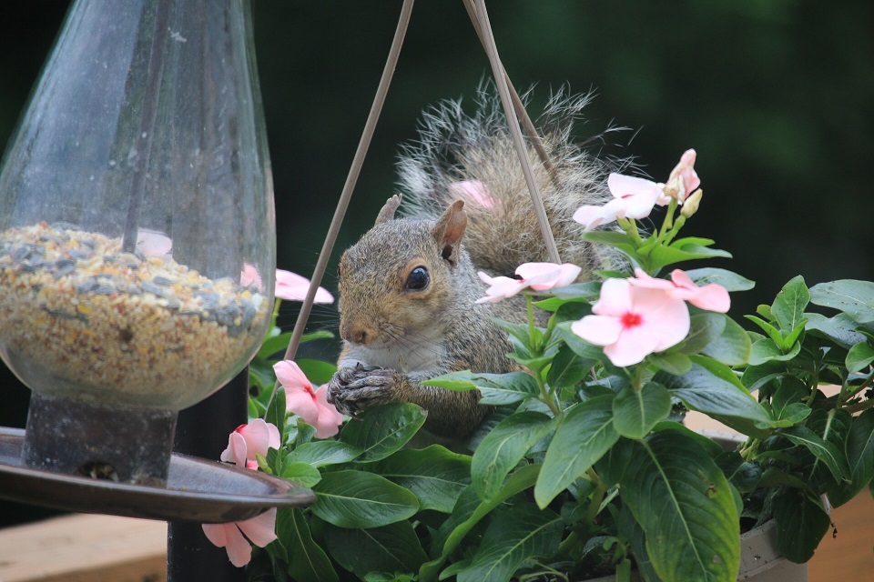 坐在我的花盆里吃着鸟食的家伙就是它,还给我弄断了几枝花!当我把花盆拿走,它想方设法地来够鸟食吃,看看它可爱的样子吧!