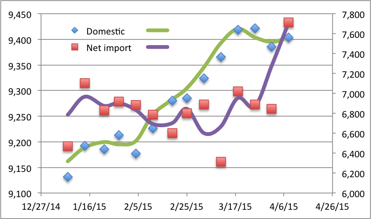 进口增加了近90万桶。