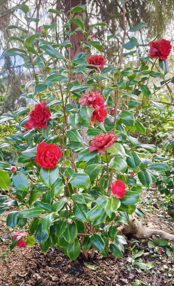 连续两天夜里零下,把盛开的红色茶花的花朵冻了,赶紧记录下每年都是白色的最先开,今年反而第二开,可能是去年长枝长多了吧,现在有1米20高了粉色的最好看,当初也是最大一棵,可能是太阳少,开得最晚,去年。没开完花骨朵都掉了[