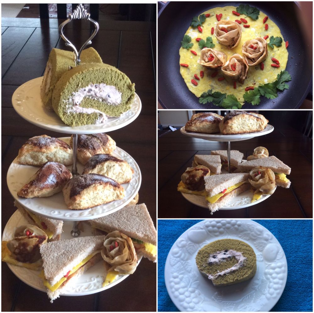 女儿在圣诞节时买来了下午茶的三层瓷盘,这回趁着过节,终于装备齐三层茶点来。