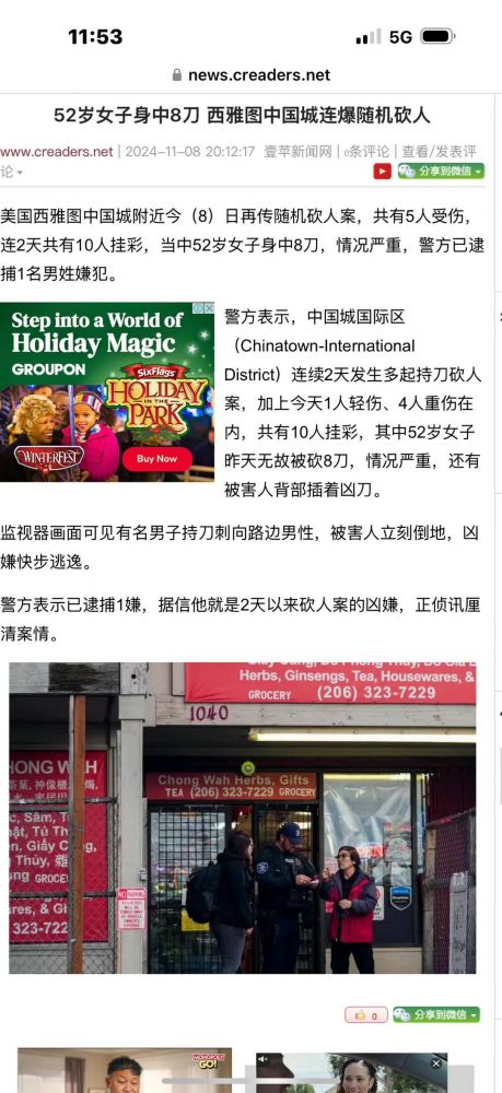 共和党、民主党,哪个党好?昨天11月8日西雅图本地头条新闻是西雅图中国城附近有人持刀随机行凶,刺伤十人,其中有一位妇女伤势严重。西雅图中国城靠近市中心,长期以来社会治安不佳。大量无家可归者随意搭建帐篷,吸毒者在街道上进行交易,吸食、注射毒品。两年前我和儿子去看Seahawks比赛,把车停在中国城里,车窗被砸破,因为我儿子的书包留在车后座上。球赛完[