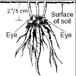 GraphicshowingcorrectdepthtoplantpeonyrootstockFirstdigahole.Thedepthoftheholedependsonwhetheryou'replantingrootstockorapottedpeony.