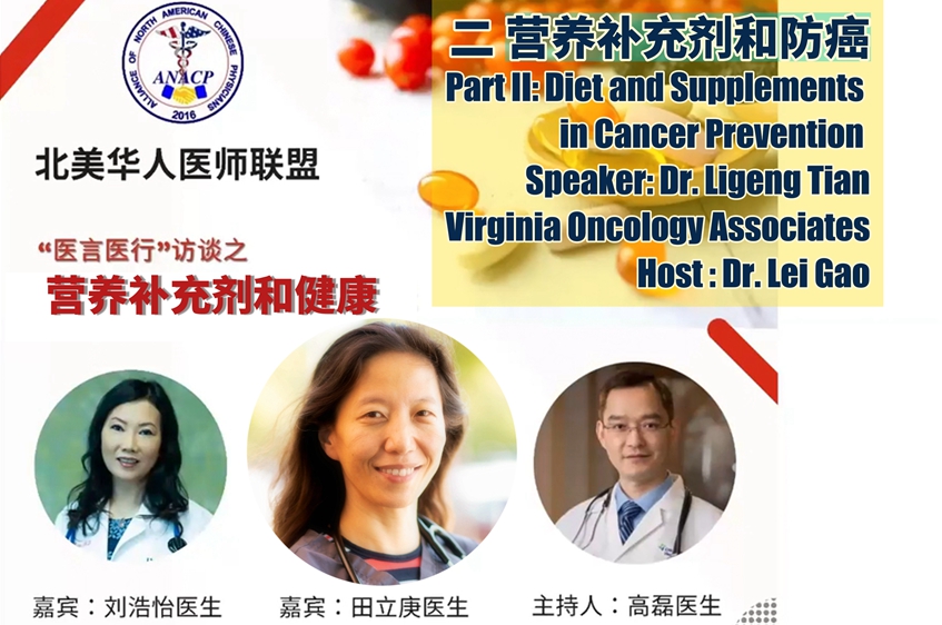 营养补充剂和防癌 维吉尼亚州肿瘤科专家田力庚医生 主讲:田力庚医生Dr.LigengTianMD 主持:高磊医生Dr.LeiGao ANACP医言医行访谈 [阅读全文]