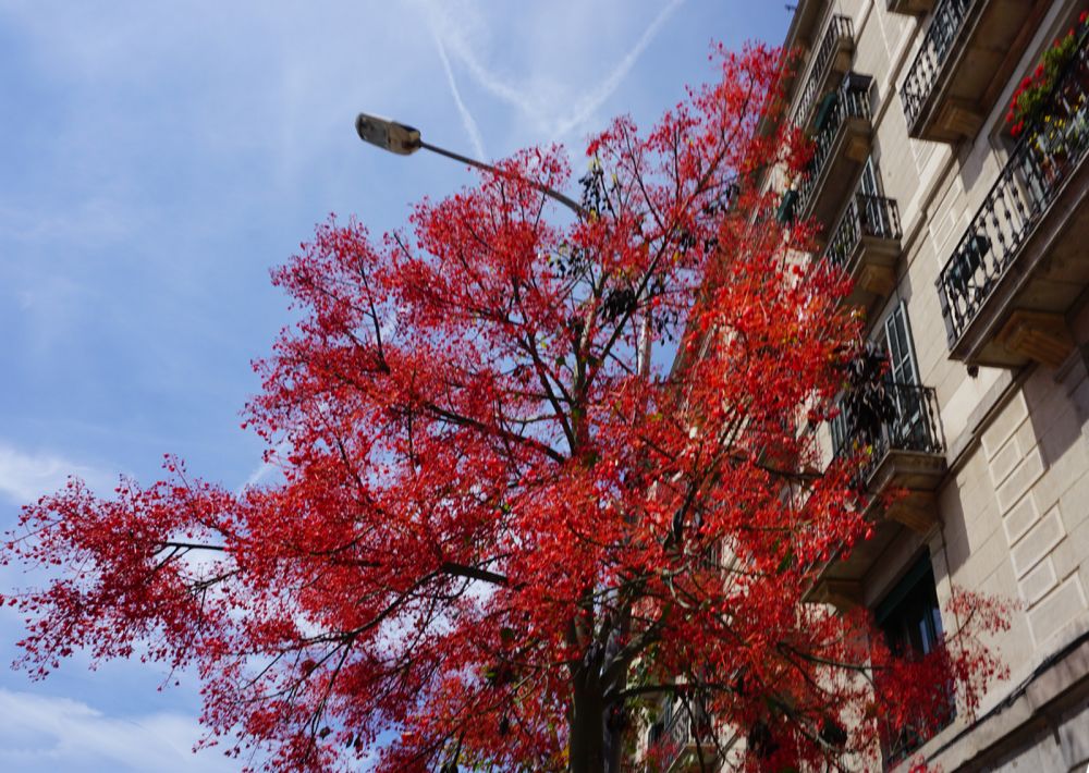 图一滨地中海的伊莎贝尔二世大道(Passeigd'IsabelII)是哥特区的东边界。街边的一棵火红的树是这次行程的起点路[