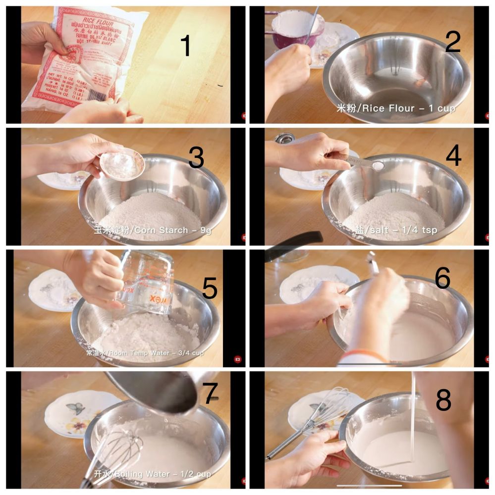 大家好,分享一个蒸米皮的方法,用米粉+盐+玉米淀粉+水搅成米粉糊。米粉不存在面粉糊的起疙瘩的问题,所以很挺容易拌匀,再用陕西秦镇米皮独有烫浆技术,倒入滚水烫一下,搅匀就可以拿去蒸了。我觉得这个基本上是最快手的一个凉皮方子了。蒸出来的米皮比面皮柔软,但依然筋道Q弹,主要在于米粉,玉米淀粉和水的比例,整个过程可以参考我的4K超高清版视频,具[