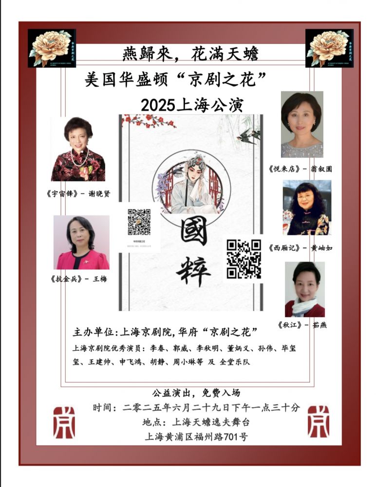 今年六月二十九日,华盛顿“京剧之花”将第二次在天蟾逸夫舞台举办京剧专场。距离上次在逸夫舞台举办专场,整整十年过去了。十年前,“京剧之花”是一个在大洋彼岸的华盛顿刚成立不到两年的文化机构。五位创始人黄岫如、谢晓贤、王梅、茹燕和翁叙園—人称“五朵京花”—在十二年间,通过讲座、示范、演出、授课等形式,在美东地区大专院[