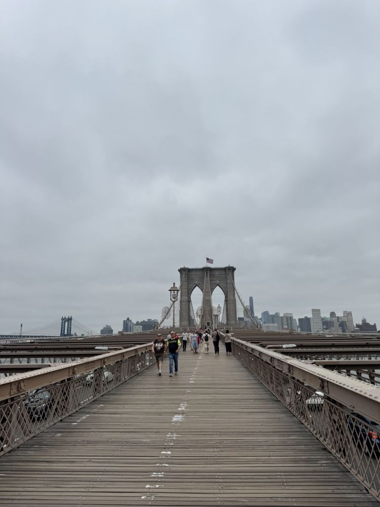 今日自曼哈顿东行,步跨布鲁克林大桥入布鲁克林,再经曼哈顿大桥返程。两桥横贯东河,百年屹立,不仅贯通城区,更承载了资本、技术与人力共同铸就的历史荣光。布鲁克林大桥始建于1869年,正值工业化浪潮席卷全球,资本主义蓬勃兴起。作为世界首座钢索悬桥,它采用彼时最先进的钢材与工程技术,由私人公司投资建造,历时十四年,于1883年竣工。这不仅是工程理性的[