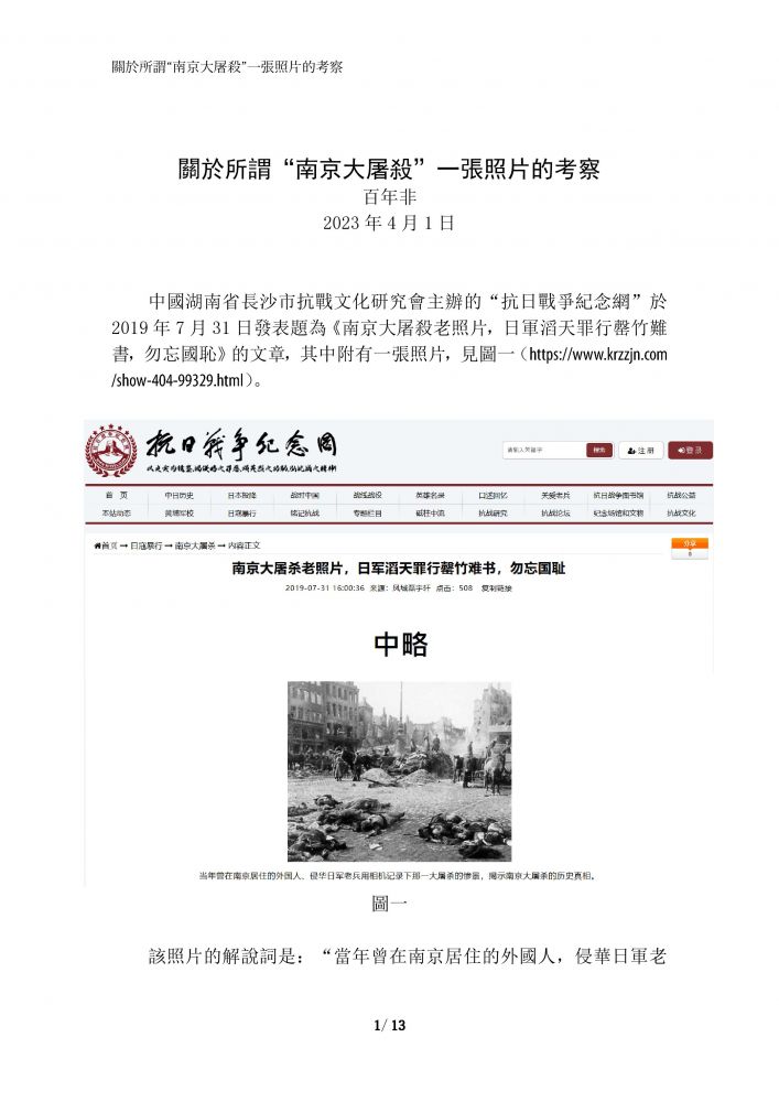 • 關於所謂“南京大屠殺”一張照片的考察