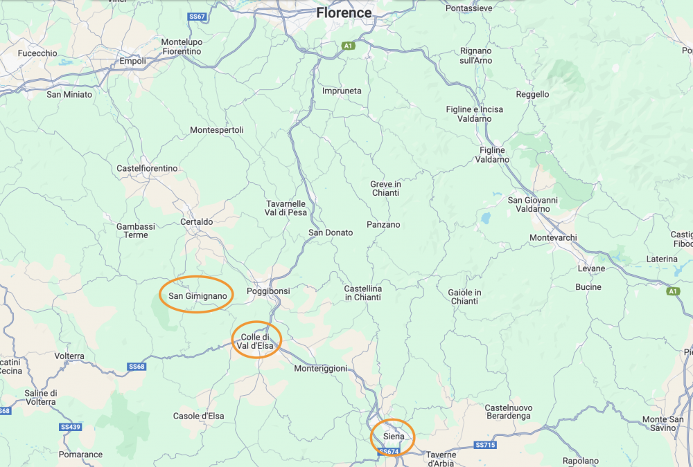 SanGimignano(圣吉米基亚诺)是一个位于Tuscany地区的城镇,它位于弗洛伦萨以南大约一小时车程左右。Gimignano是个山头小镇,历史上是一些收过路费的的山大王所建。因此SanGimignano有许多建于中世纪的高耸的塔楼,原有七十多个,现在还剩下十几个,这些塔楼定义了这个镇子的天际线和城镇特色。说它们是古代的碉堡也不为过,这些碉堡没有什么艺术美感,但因为是中世纪古董[