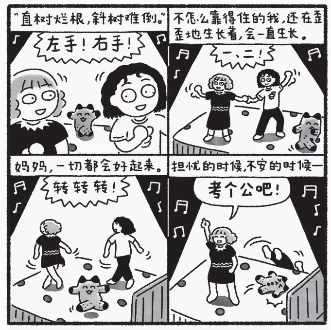 杰尼丸子不想考公,但她也能理解,家人“爱考公”,或许是出于对权力的想象。但每个人的人生都只属于自己,需要平衡他人的期待和自己内心真正的渴求。活在世俗标准之外,杰尼丸子觉得最难的是持续保持内心平静:“我会努力在各种源于内心的忧思和来自他人的影响之间寻找平衡点,像一颗磁石在其他各种磁石制造的力场中小心挪动,尽量不要被吸过来又吸过去。”