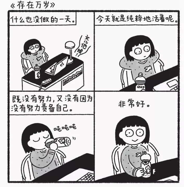 早些年,她在北京和老家之间往返,最后流浪到她的“世界尽头”——自己的房间。她每天大部分时间都待在里面画漫画,从普通上班族变成足不出户的“怪咖”。画了将近8年,她终于出版了自己的第一本漫画书,叫《拒绝参加游戏》。