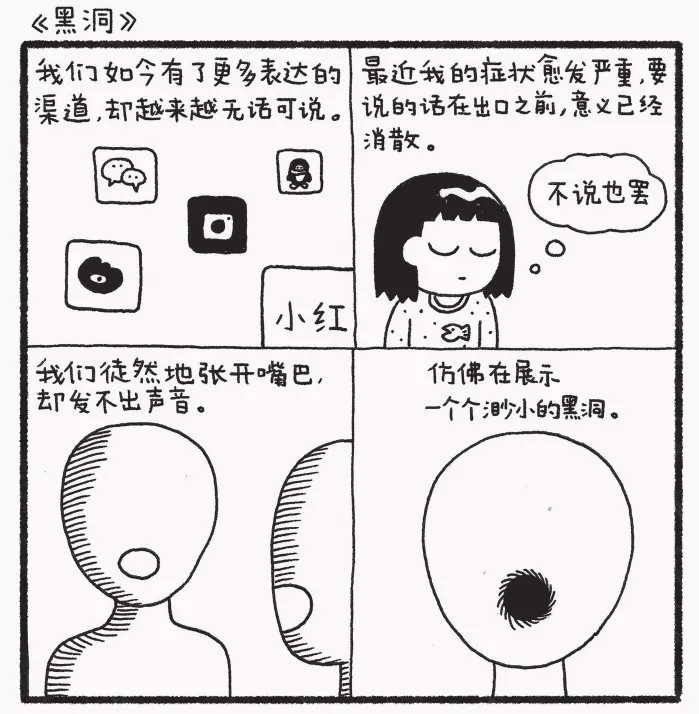 活在这个时代,要对抗的除了来自世界的抽象的算法,还有具象的算法。她在社媒平台上发漫画,渴望被看见,但是发现算法无处不在,有的内容形式就是能得到更多曝光。比如在小红书上,两格漫画更易读,也有更大概率获得自然流量。她不是特别适应这种形式,但不得不面对现状:能发布漫画作品的平台确实不多,不顺应它的规则,会很辛苦。