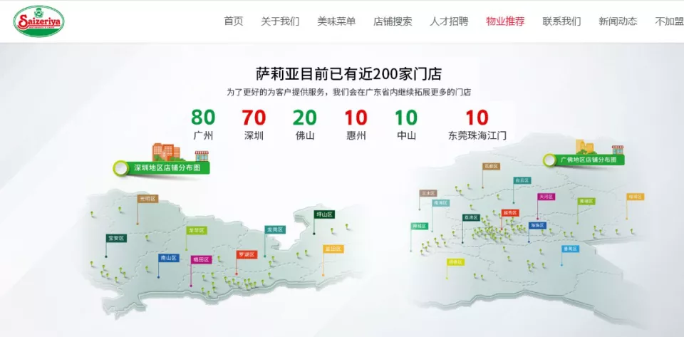 △广东萨莉亚门店分布。(图/萨莉亚官网)