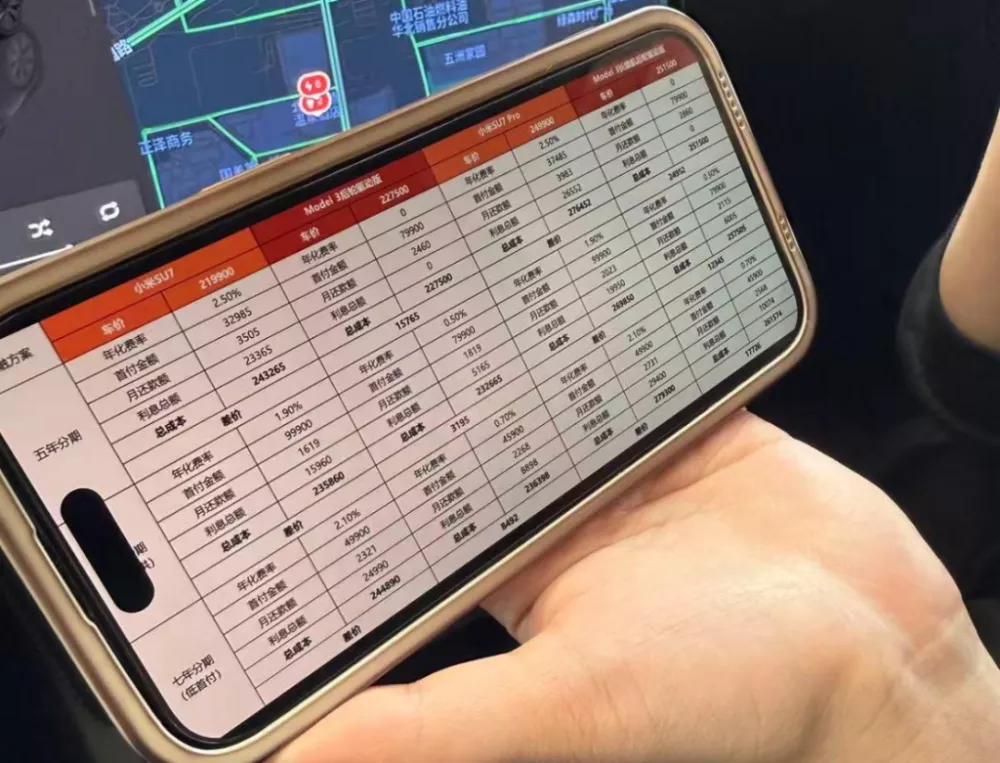 七年低息方案,小米的年化费率是1.9%,而特斯拉是0.5%。“不是所有车企都能向银行申请0.5%的年化费率。”特斯拉销售强调。