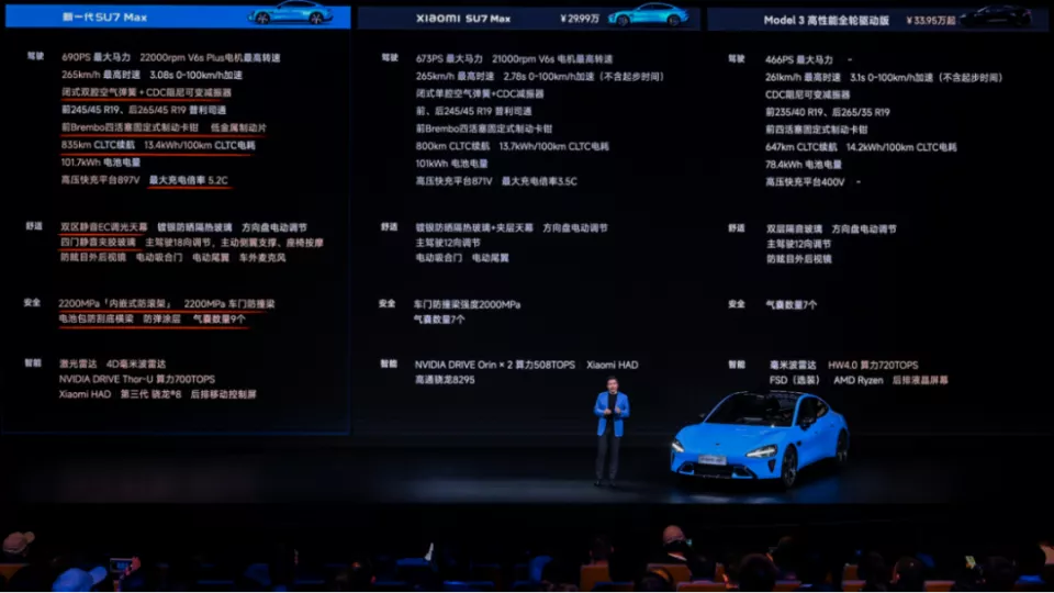 3做的,90%的指标都超过特斯拉,参数对标,小米很有信心。”小米集团董事长雷军在发布会上直言。