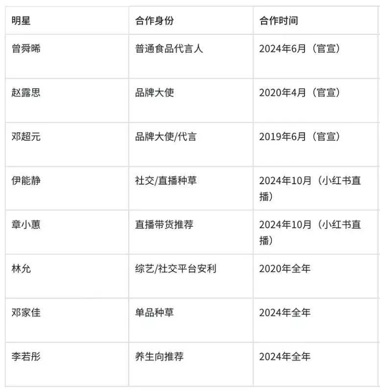 根据网友总结,早在2019年,优思益就开始和明星网红合作,邓超元、赵露思都当过优思益品牌大使。
