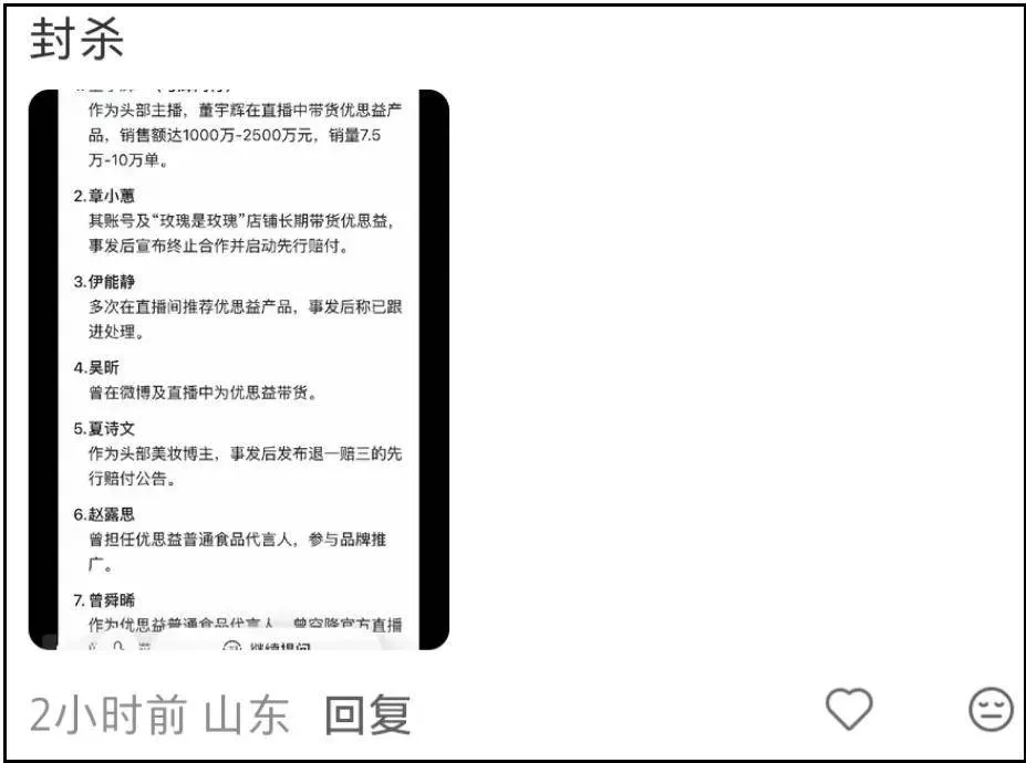 更令人无奈的是,等到风波过去、舆论消散,出现在优思益风波中的绝大多数明星网红都不会受到太大影响。
