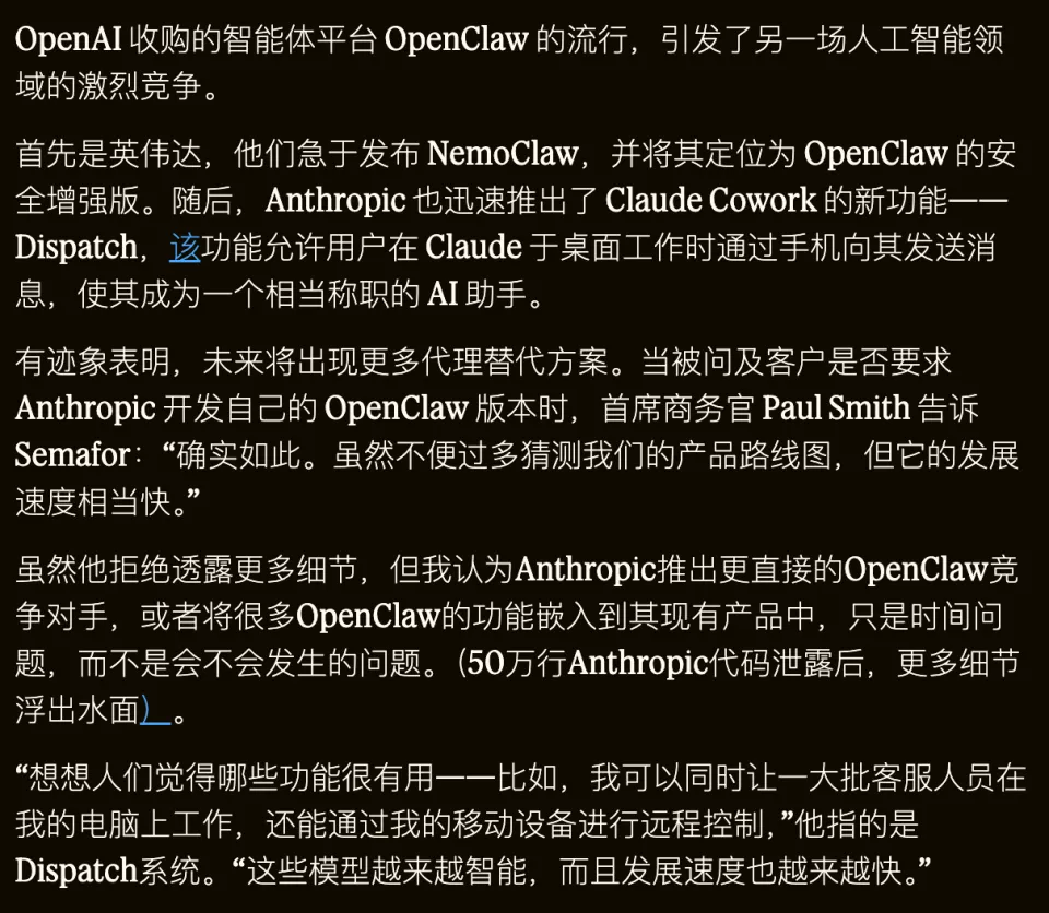 现在,但对Anthropic来说,OpenClaw成了敌营的「特洛伊木马」。