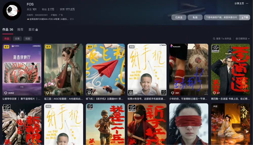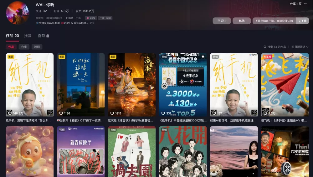 去年,抖音正式发布「AI创作浪潮计划」,为优质AI内容提供系统化扶持,进一步拓宽创作的可能性。李婷表示,抖音更关注的是内容本身,而不是创作者的粉丝体量,还会主动联系创作者加入社群、参与后续扶持计划。