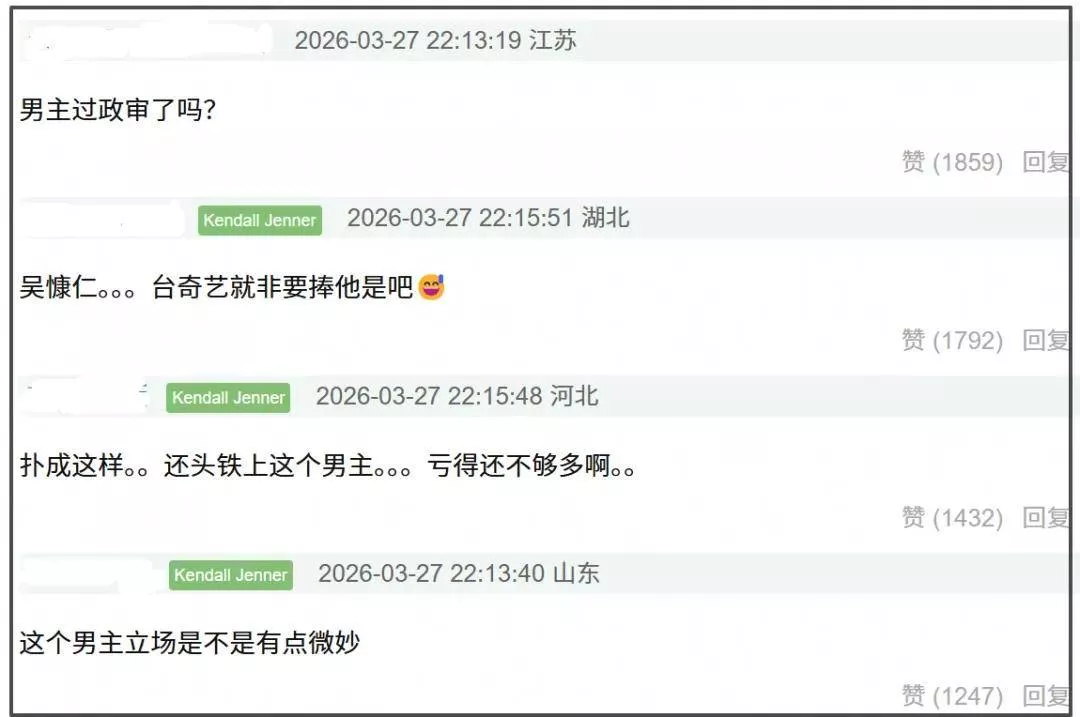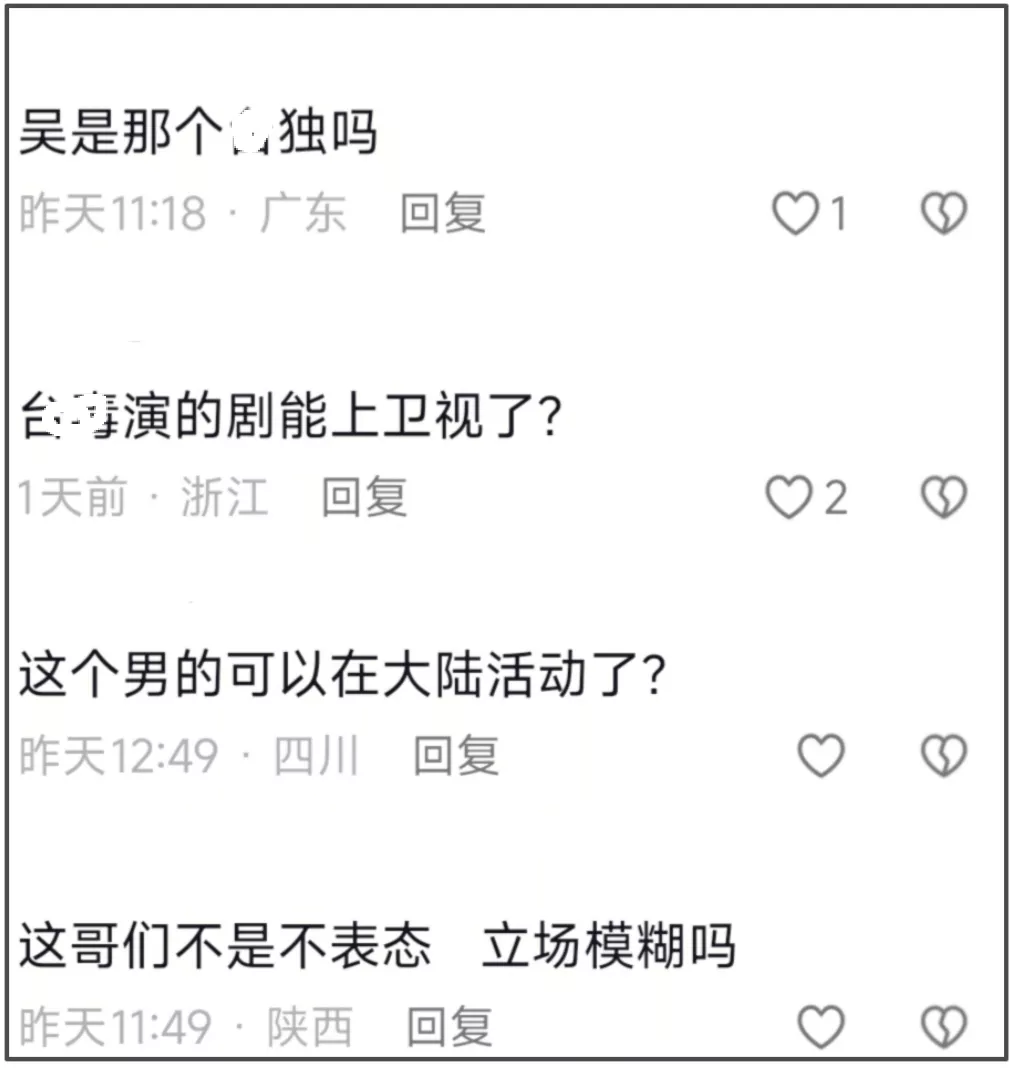 哪怕现在《危险关系》尽量低调地上线了,但是观众抵制的声音依旧存在,官方账号中为数不多的男主片段视频评论区都会出现质疑的声音,比起讨论剧集相关内容和演技,大家更关注吴慷仁的立场问题,质问他凭什么能在大陆活动,他演的剧凭什么能在卫视上星播出。