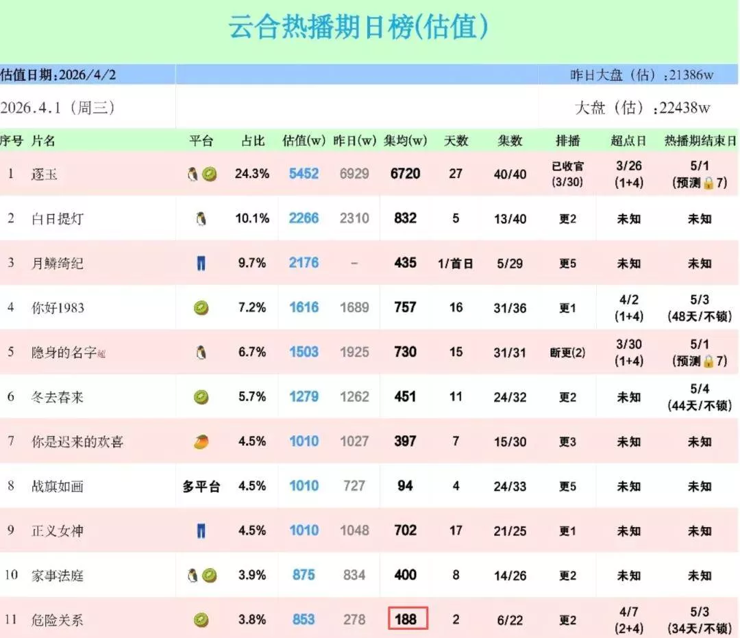《危险关系》成绩不佳也是为行业敲响警钟,即使平台头铁愿意启用立场具有争议的演员,无视观众抵制的声音,但最后播出成绩如何还是要看观众对作品买不买账。什么时候行业学会尊重观众了,什么时候行业的春天也就来了。