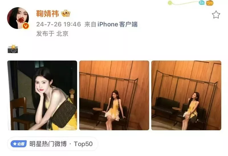 拿2024年7月份的某名牌手袋推广来说,鞠婧祎只是通过个人社交账号发了3张图,便有30万入袋。