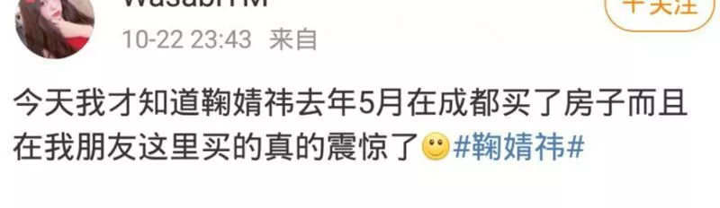 2020年时还有网友爆料,称鞠婧祎2019年时在成都买了房。参照成都当时每平1.2万元左右的平均房价来算,少说也得花出去近200来万。
