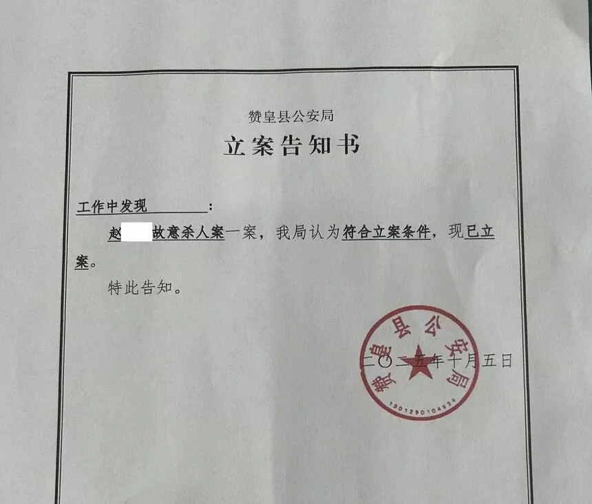 2025年10月5日,犯罪嫌疑人赵某某被依法逮捕,赞皇县公安局以故意杀人立案侦查。警方在火葬场附近的荒地中发现了高某某的遗体,旁边正是赵某某家的花生地。