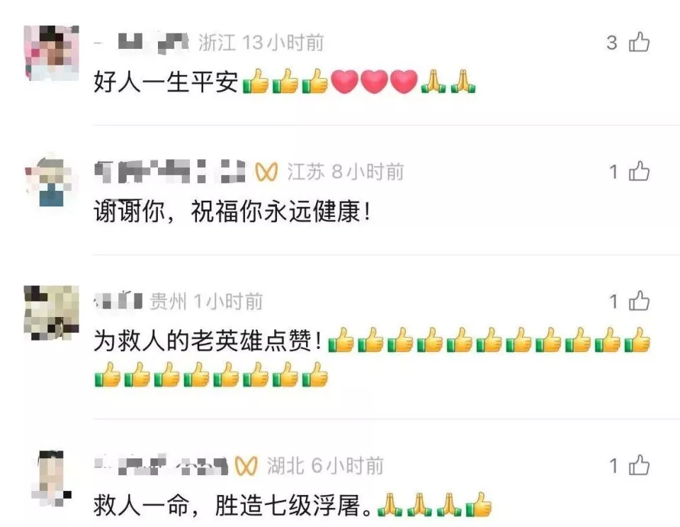 不少网友看到项师傅跳水救人的视频报道后,纷纷点赞。大家表示:“好人一生平安,祝师傅永远健康!”