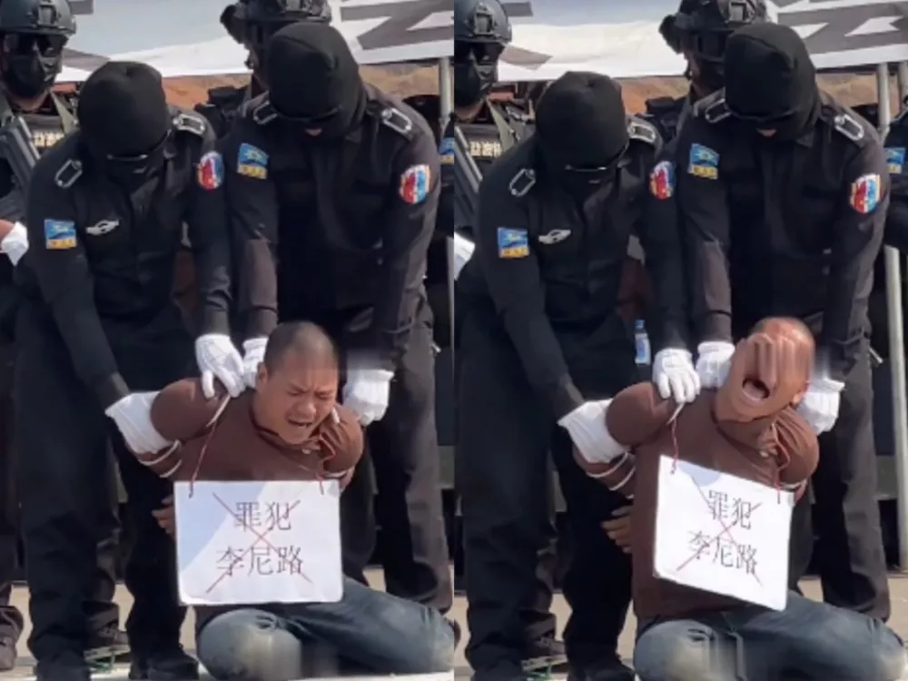 宣判仪式现场,当地民众纷纷到场旁听,宣判结束后,李尼路被立即押赴刑场执行死刑。现场视频显示,李尼路在听到死刑立即执行的判决时,情绪瞬间崩溃,当场大哭,全身颤抖,随后被执法人员戴上黑色头套,押往刑场。