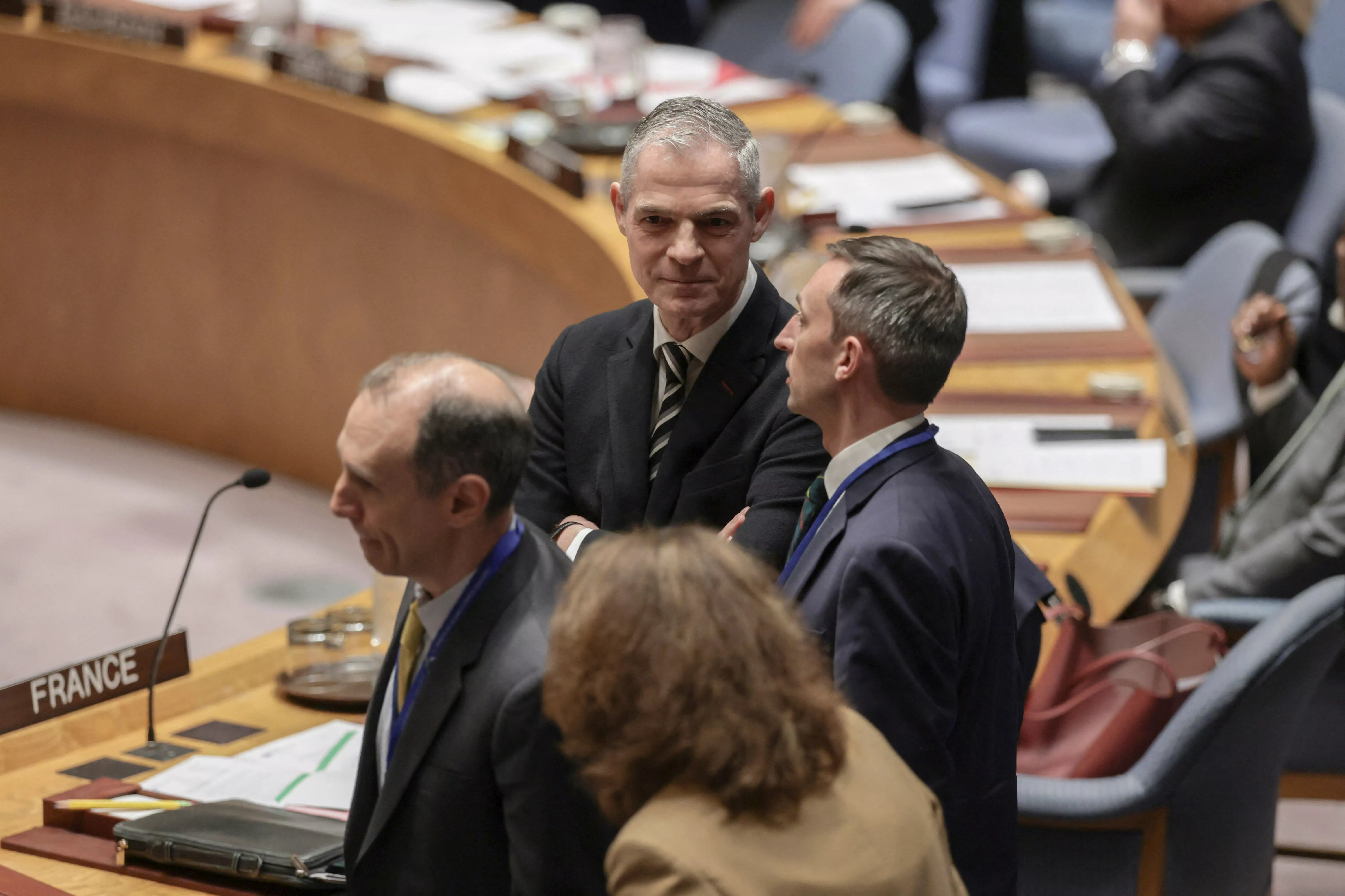 2026年4月7日,法国常驻联合国代表博纳丰(Jerome Bonnafont)在纽约联合国总部出席安理会关于霍尔木兹海峡决议的会议。(Reuters)