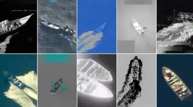 ·2025年,美军对加勒比海所谓“贩毒船”进行打击时的画面。(央视新闻)