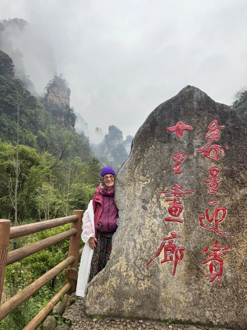 Gill虽然已经74岁,但精力非常充沛,总是能走在大家前面。4月7日,大家抵达天门山。999级台阶让大多数人望而却步,团友也大多选择乘坐扶梯,但Gill选择亲自登上999级台阶。在张家界大峡谷,她迫不及待走上玻璃桥,感受峡谷风景。在张家界国家森林公园,她也迈着大步,走在所有人前面。“Gill奶奶的这种精神也感染了我们。”吕燕说。