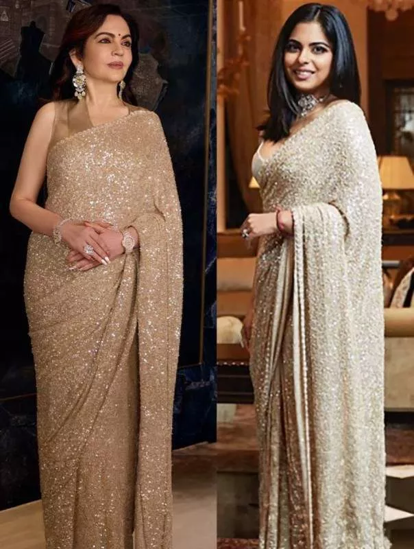 这件纱丽并非新品,初次亮相是在 2020 年,当时由妮塔的女儿伊莎.安巴尼在一场私人婚礼上首次演绎,时隔六年,妮塔选择在印度银幕奖这样的重大场合重新穿上它,不仅是对这件礼服质感的极致自信,更让它从一件普通的高级订制服,升级为承载家族记忆与情感的 “传家宝”,见证着母女间的温情传承。