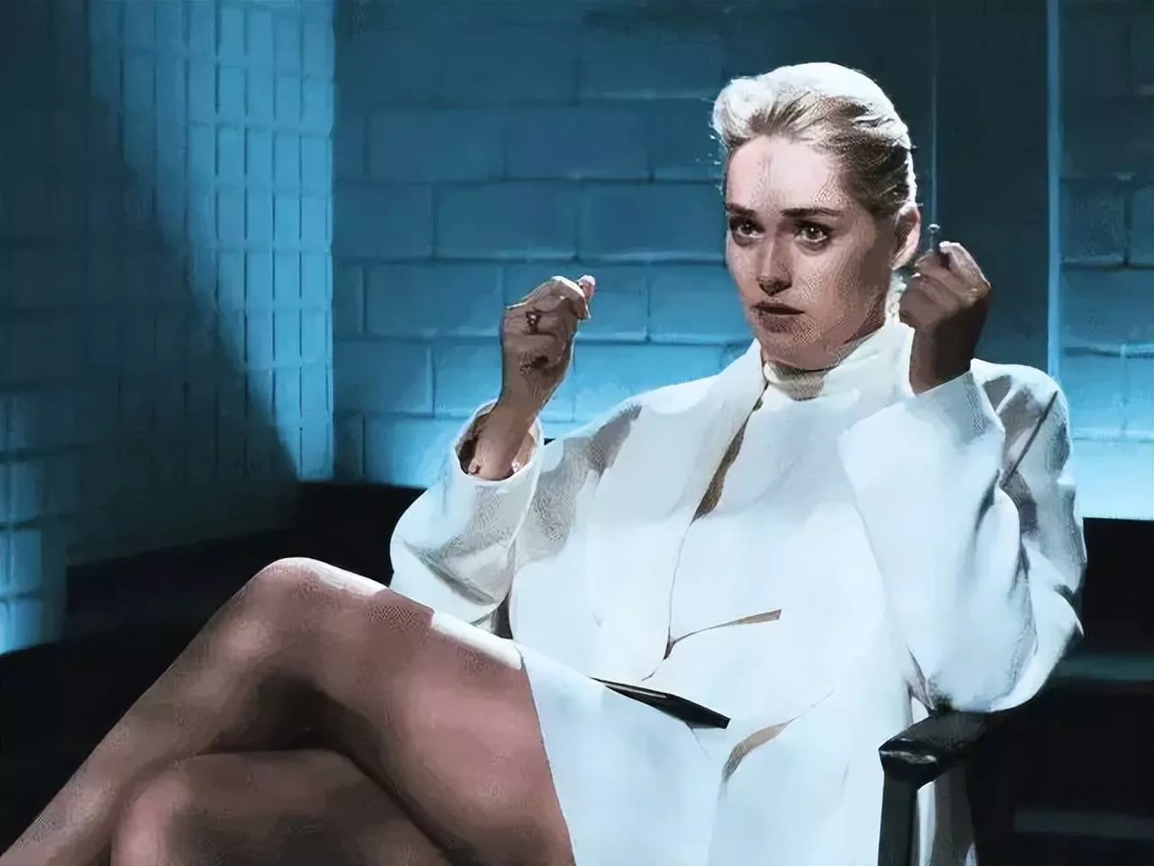 从此,莎朗.斯通凭借白裙、金发、冰烟,成为90年代性感女神的代名词。
