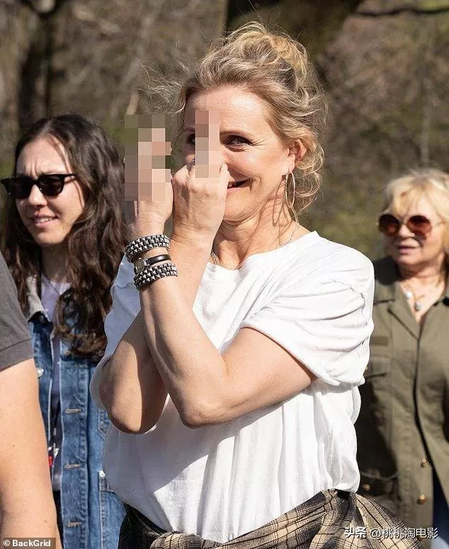 片场路透中,卡梅隆·迪亚茨完全抛开了传统女星的包袱。
