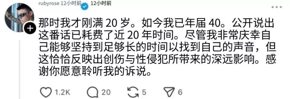 鲁比·罗丝表示,事件发生在近20年前,当时她年仅20出头,如今已40岁。她透露,事发后曾将此事包装成“醉酒趣事”公开,因凯蒂·佩里同意帮她(澳大利亚人)办理美国签证,她便一直对此保密。起初她并未打算报案,但称持有相关照片,且事件有多名目击者,随后在与网友交流后确认已提交警方报告。