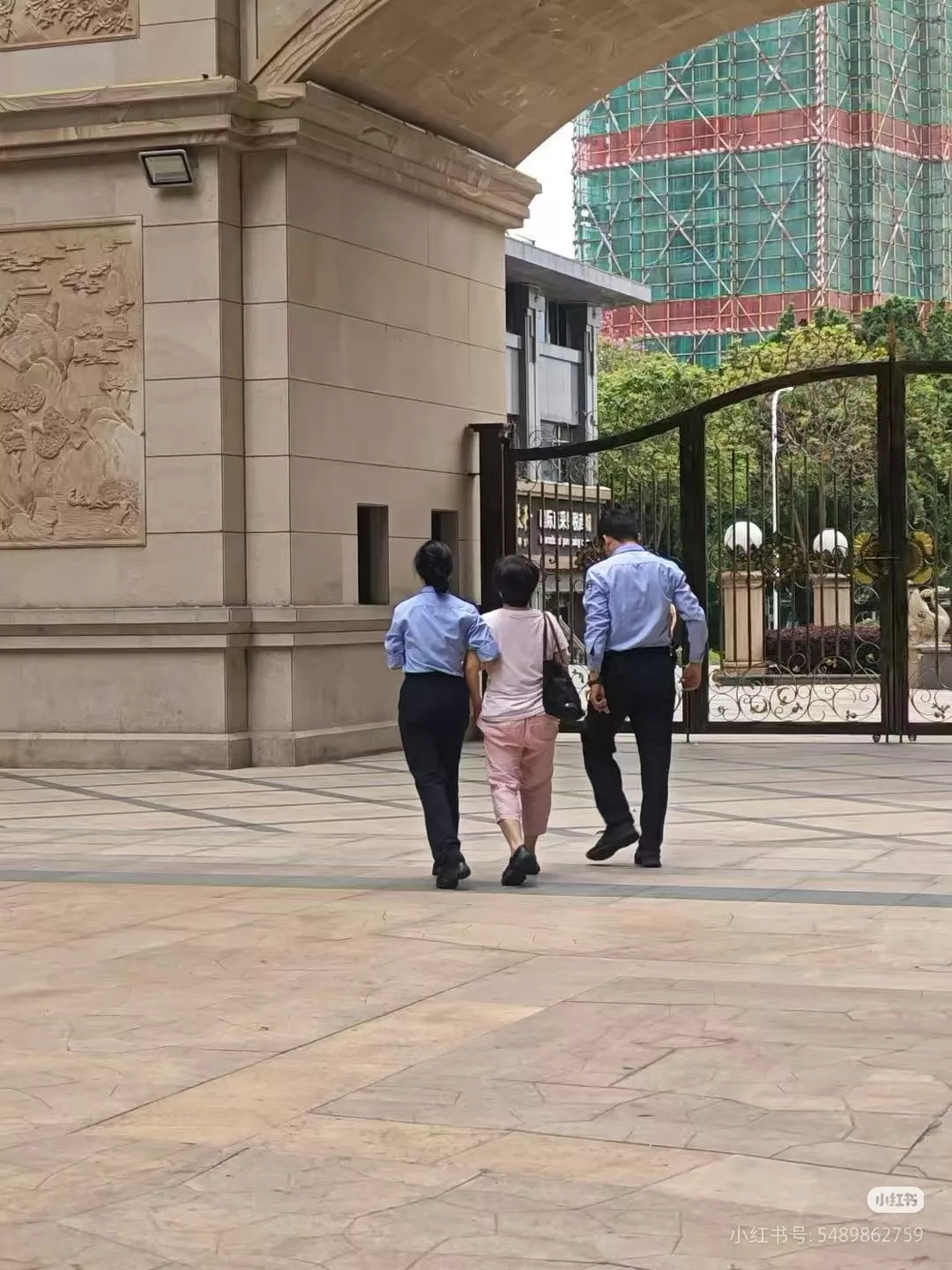 有网民影到涉事大妈被警方带走。(小红书截图)
