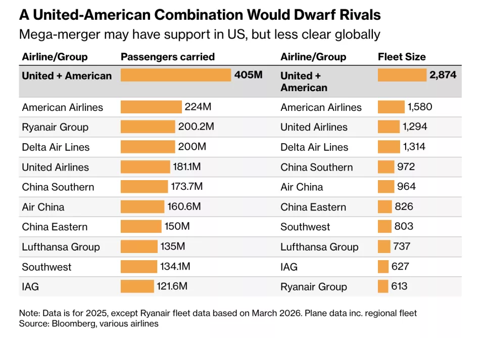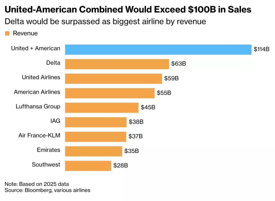 目前,联合航空与美国航空同属美国四大航司之列,两者合计市场份额超过美国市场的三分之一。一旦合并,将成为全球规模最大的航空公司。但也正因如此,这一交易几乎注定会遭遇严格的反垄断审查。