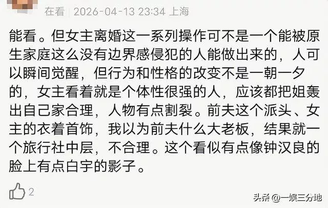 剧情又说她被原生家庭压迫,又要她立马觉醒离婚。