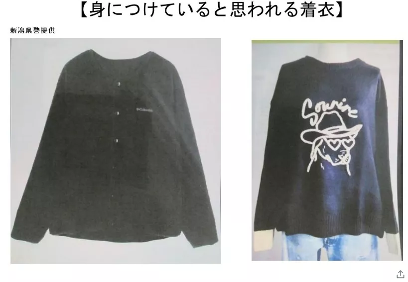 直到4月9日,案情才出现转折。当天上午10时过后,一名在长冈市釜岛附近信浓川河岸捡石头的男子发现异状,通报“信浓川右岸疑似有遗体漂流”,警方赶抵后在河中沙洲发现一具女性遗体。遗体身穿黑色长袖上衣、浅蓝色牛仔裤与黑色裤袜,外观无明显外伤。